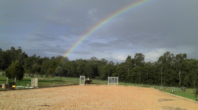 Our large back paddock gives us plenty of room to ride. Horses in work get the variety of doing hill work and splashing through the dam. Great for the young horses to experience different terrains and work confidently outside the arenas. Easy access to the national parks trails allows us to do our trotting fitness work on firm surface ideal for horses in three day event preparation.